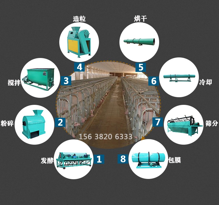 豬糞有機(jī)肥生產(chǎn)線,加工商品有機(jī)肥需要兩個(gè)步驟:前期發(fā)酵與處理部分和深加工造粒部分。生物有機(jī)肥設(shè)備配套需要槽式翻拋機(jī)、半濕物料粉碎機(jī)、滾筒篩分機(jī)、臥式攪拌機(jī)、攪齒造粒機(jī)、回轉(zhuǎn)烘干機(jī)、冷卻機(jī)、篩分機(jī)、包膜機(jī)、包裝機(jī)、輸送機(jī)等設(shè)備。